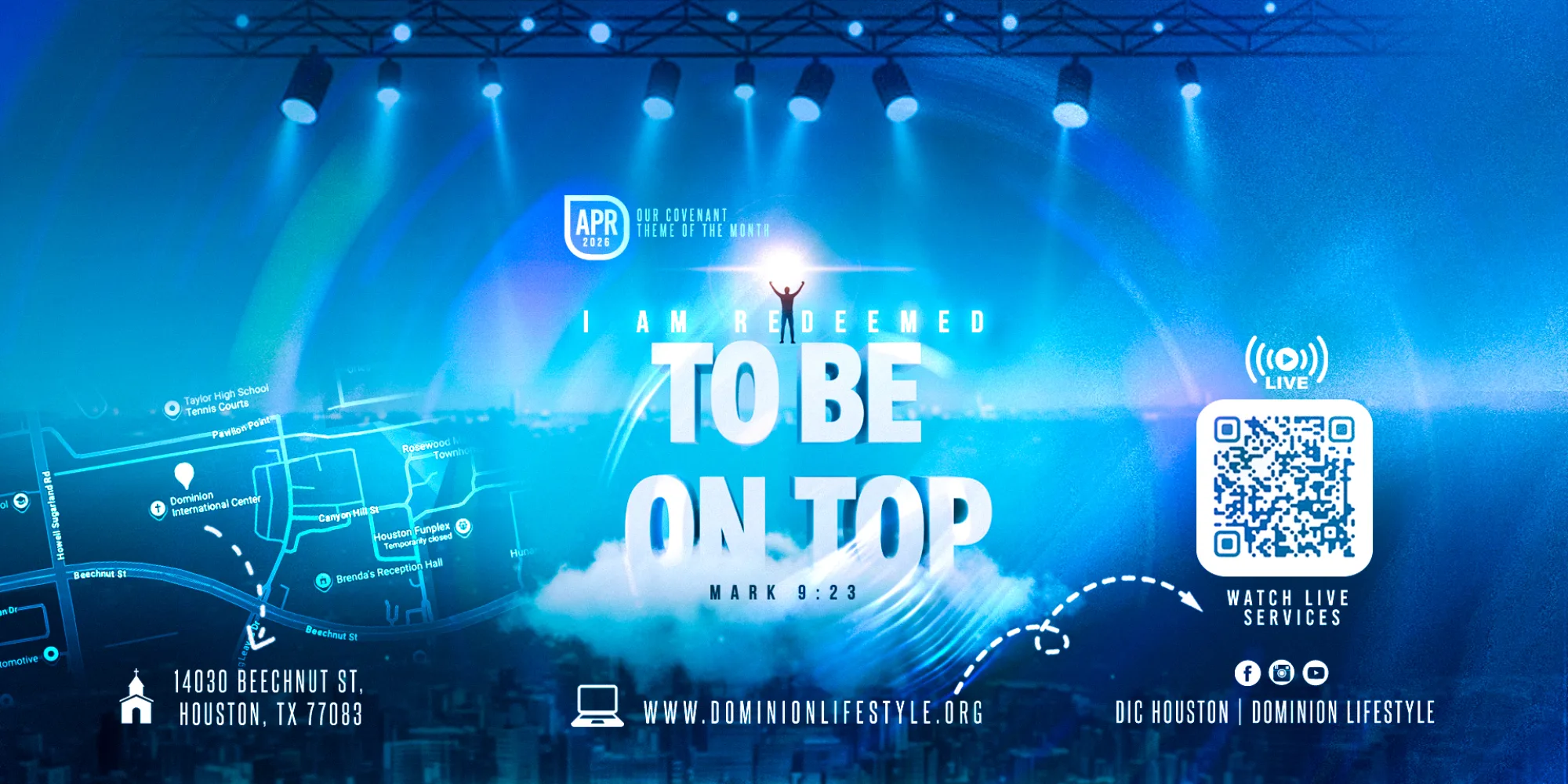 Dominion International Center is a vibrant church located at 14030 Beechnut St, Houston, TX 77083, led by Pastors Toye and Wumi Ademola. We are committed to helping people reconnect with God and building a lasting relationship with Him. Join us for dynamic worship services on Sundays 8AM–1PM and Wednesdays 7PM. From life-changing messages to community outreach, there's something here for everyone at DIC Houston.